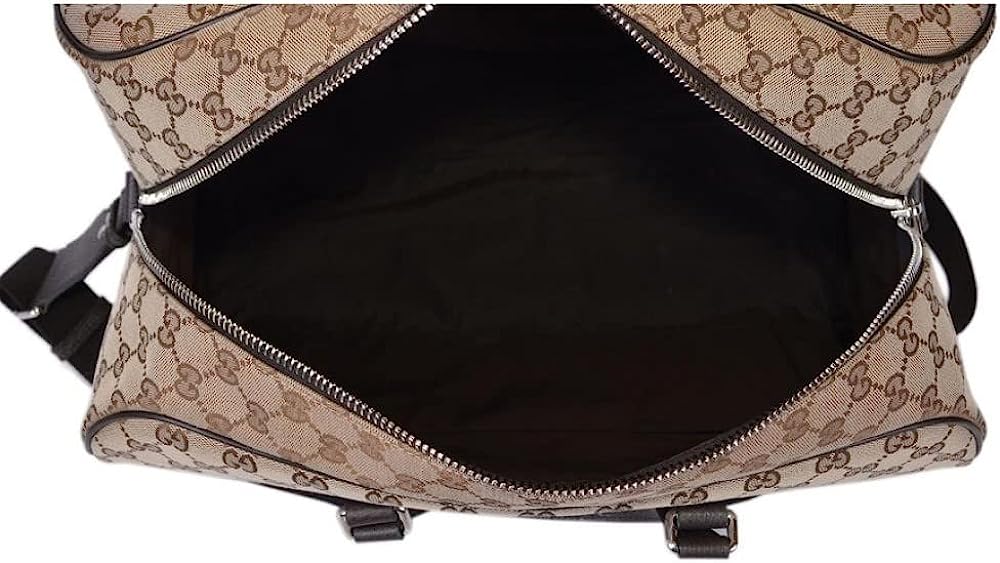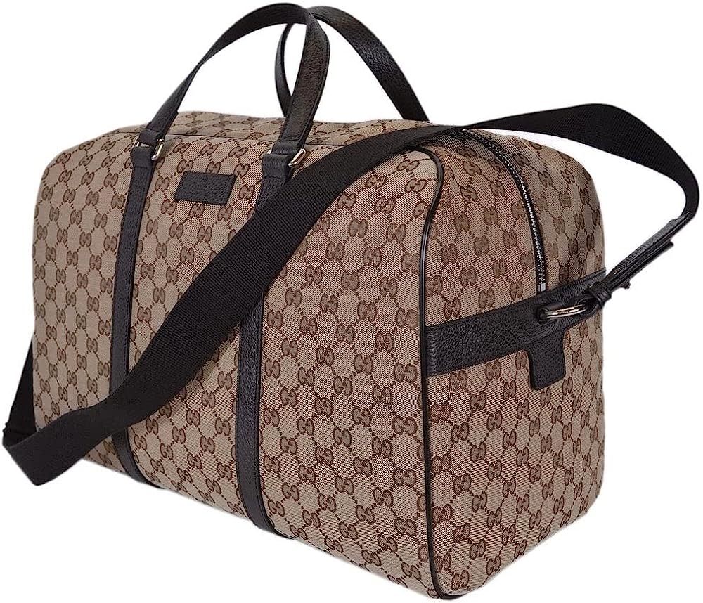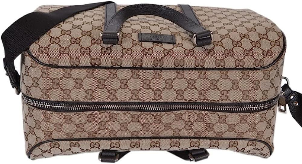 • A favorite Gucci travel piece this large beige and brown canvas Gucci GG canvas duffle bag will make your next trip a breeze. This roomy luggage piece has room for clothes, shoes, and toiletries. Model 610105