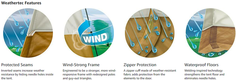 • Weather Tec system - patented welded floors and Inverted seams help keep water out