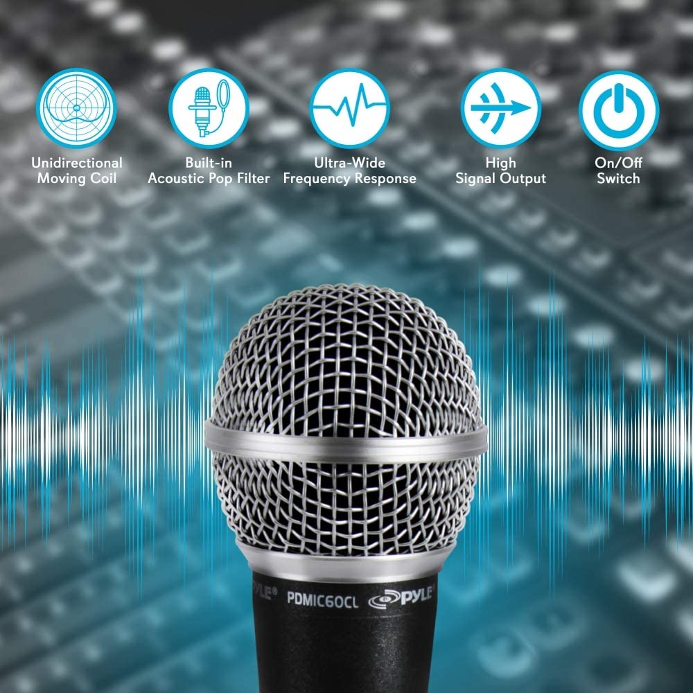 Pyle Professional Dynamic Vocal Microphone - Moving Coil Dynamic Cardioid Unidirectional Handheld Microphone with ON/OFF Switch Includes 15ft XLR Audio Cable to 1/4'' Audio Connection - PDMIC5