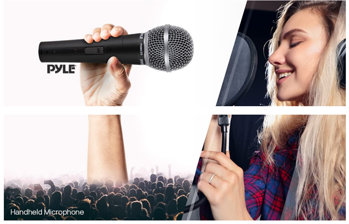 Pyle Professional Dynamic Vocal Microphone - Moving Coil Dynamic Cardioid Unidirectional Handheld Microphone with ON/OFF Switch Includes 15ft XLR Audio Cable to 1/4'' Audio Connection - PDMIC59