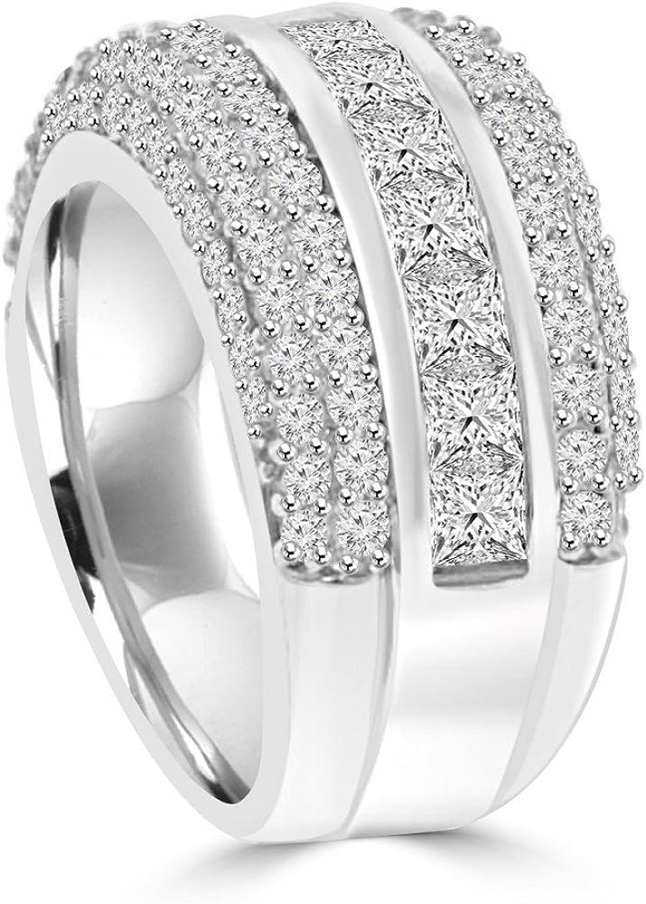Madina Jewelry 4.10 ct Ladies Princess and Round Cut Diamond Anniversary Ring in Platinum