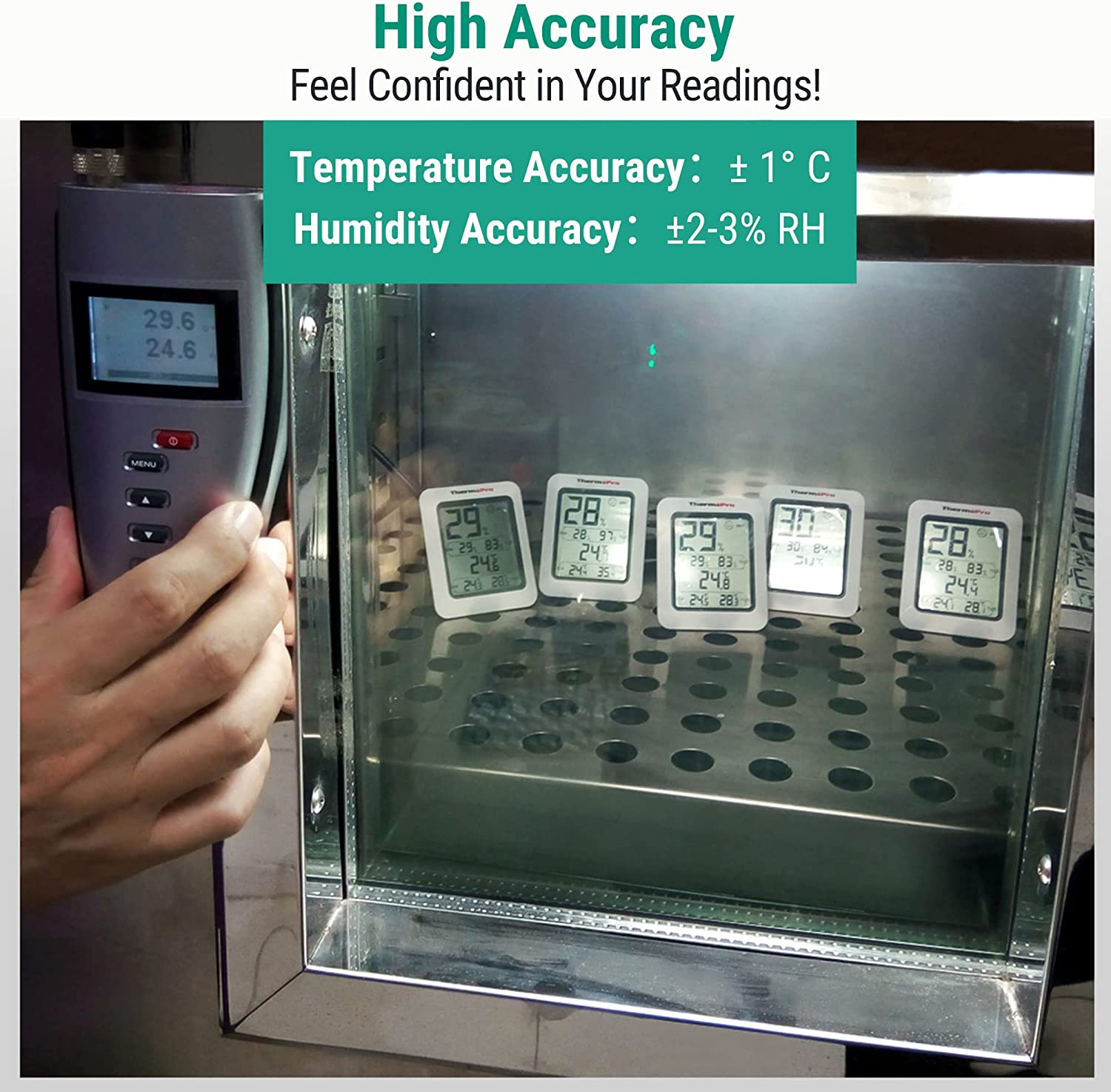 • High Accuracy & Quick Refresh Rate: This inside thermometer features a high accuracy of ±2–3%RH and ±1°F, making it ideal for measuring fluctuating readings like those found in a greenhouse; Data measurements are updated every 10 seconds to give you the latest updates on your environment