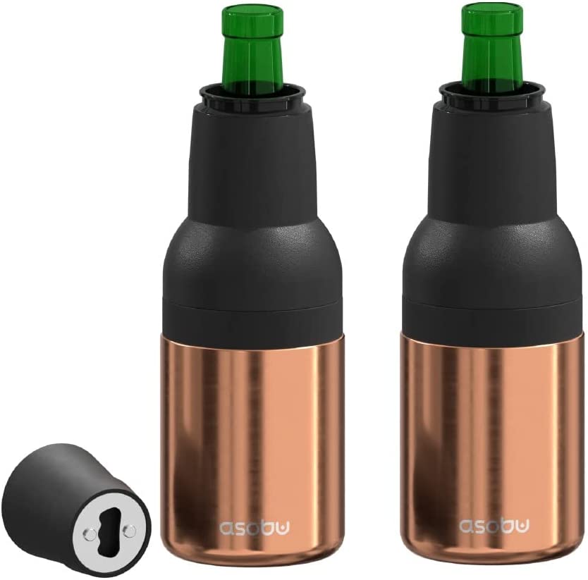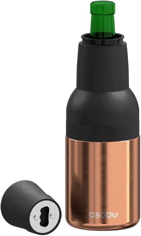 asobu Frosty Beer Holder 2 Go Vacuum Insulated Double Walled Stainless Steel Beer Can and Bottle Cooler with Beer Opener Eco Friendly and Bpa Free(Copper)