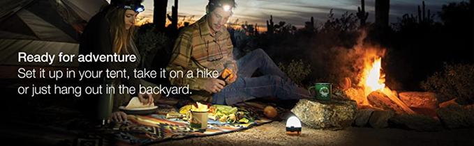 - Great for camping: Features an integrated cord and hook for hanging; Place it on a table, hang it in your tent, attach it to your belt or backpack, and more.