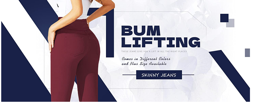 • BUM LIFTING: These jeans give you a lift in all the right places! Our stretchy, ultra-comfortable pants is constructed to give you lift and contour your derriere for an instant boost without any padding.