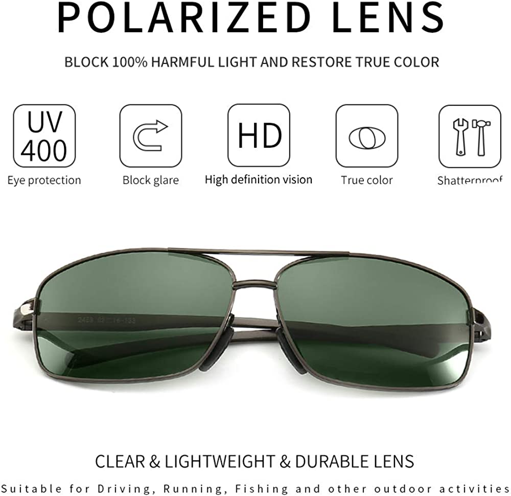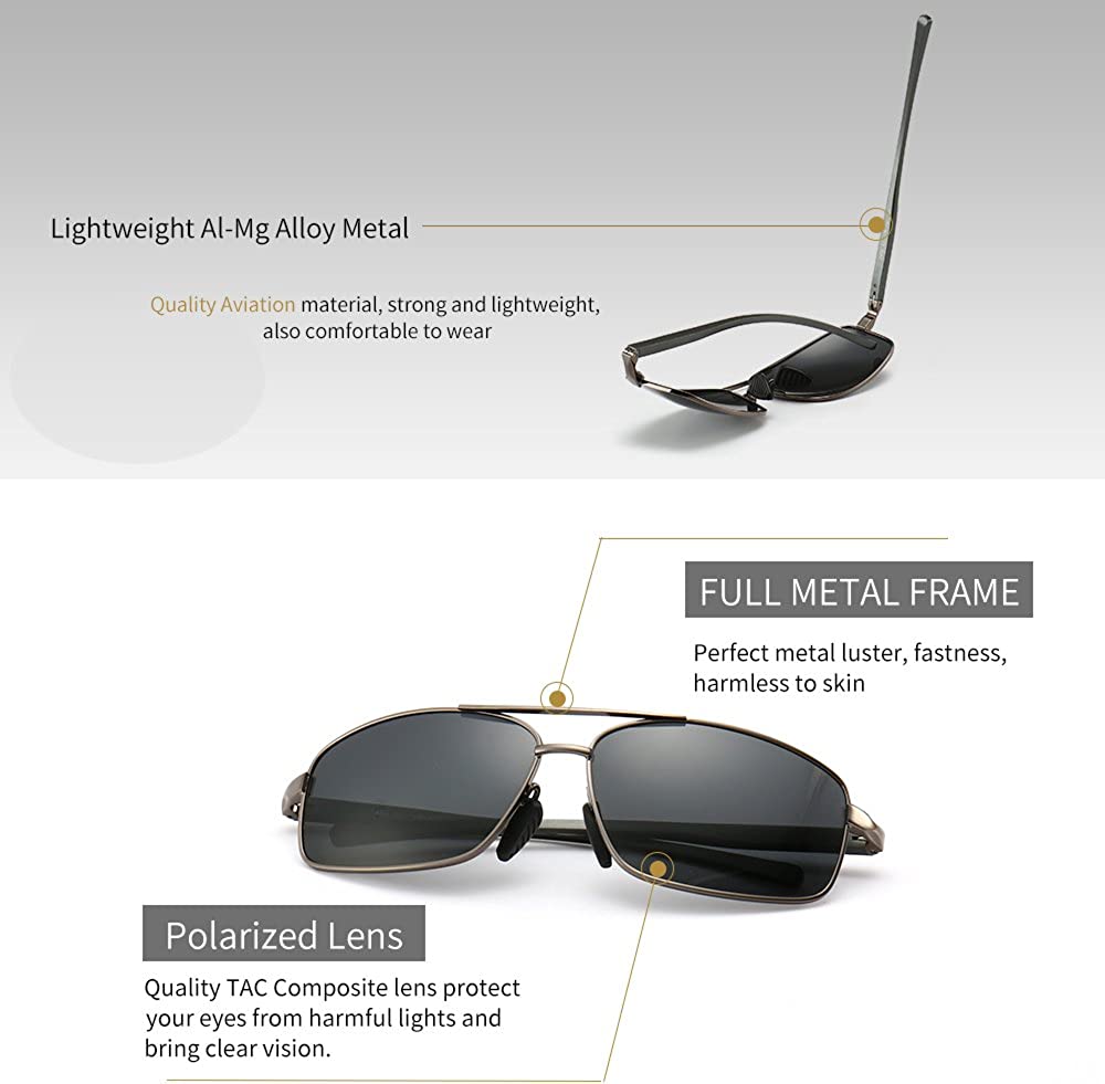 Fashion Metal Frame - Lightweight and Strong rectangular polarized sunglasses