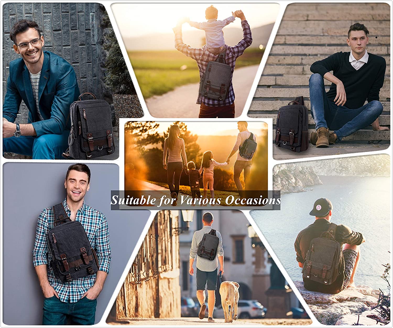 The canvas backpack is vintage and multifunctional with lots of pockets.