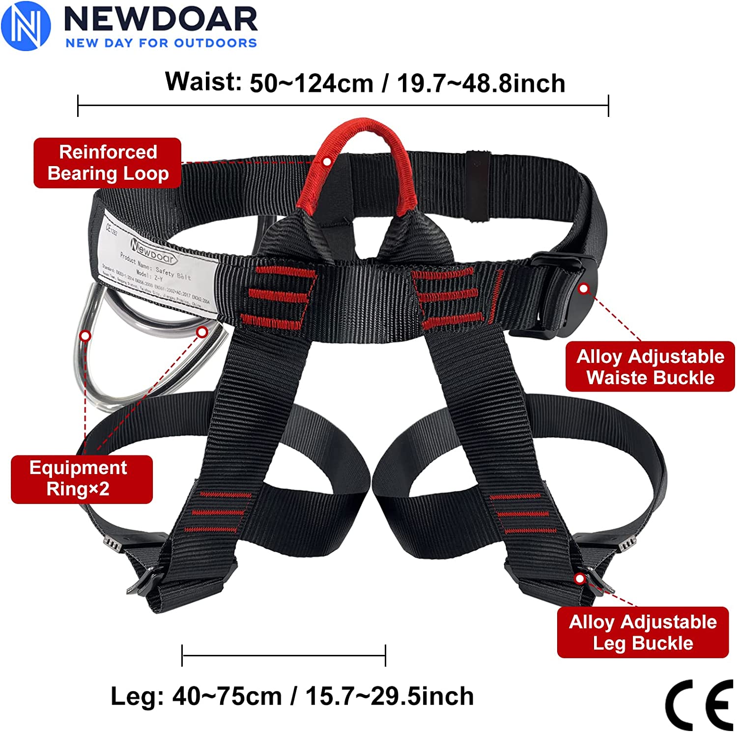 [FIT]:climbing Belts fits waist 20"to 48"(51cm-122cm);Leg 16" to 31.5"(40cm-80cm). Easy to operate, wear and remove.