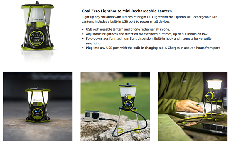 • LIGHTHOUSE MINILANTERN: Even small things can give off bright light. The rechargeable Lighthouse Mini Core Lantern is great for emergency, outdoor, and indoor use and offers a light and phone charger in one. This camping lantern is easy to carry, hang, or stand up wherever you go.