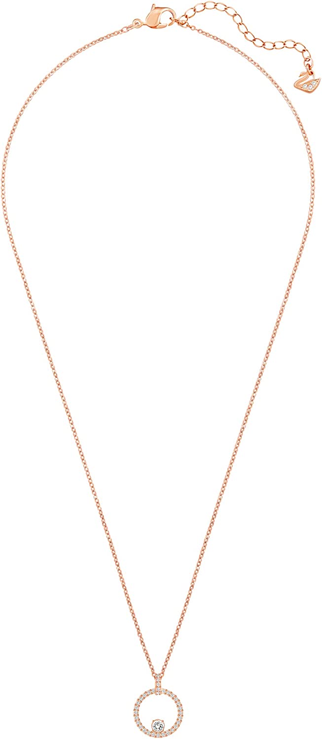 • Items delivered: 1 x Swarovski Creativity Collection necklace, 14 7/8 inch chain, 5/8 x 3/4 inch rose-gold tone plated, clear crystal circular design pendant, with Swarovski necklace box