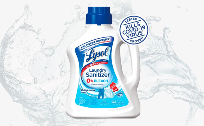 Our clothes are in constant contact with bacteria throughout our day-to-day activities, for example through contact with contaminated surfaces, other people and our own bodies. Bacteria can spread from one fabric to another in the laundry basket, from the washing-machine drum to the next load. Some these bacteria can survive a wash cycle and can cause potential infection risk with pathogenic bacteria. When it comes to certain laundry loads such as children's clothes or sportswear, you want your detergent to eliminate bacteria that can cause illnesses and create lingering bad smells. But detergents alone don't actually kill all bacteria. Introducing Lysol Laundry Sanitizer, an additive specially designed to kill 99.9% of bacteria left behind. Simply add Lysol Laundry Sanitizer to your rinse cycle. It does not contain any bleach and even works in cold water so is safe to use on most fabrics including whites, colors and darks.
