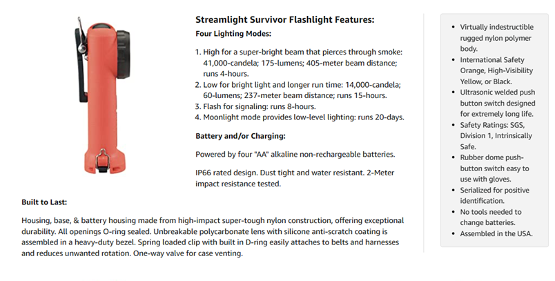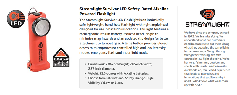 Included Components | Streamlight Survivor Firefighter Right Angle Light |