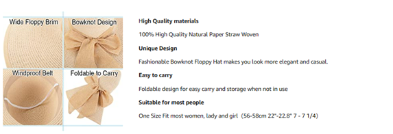 Womens Big Bowknot Straw Hat Floppy Foldable Roll up Beach Cap Sun Hat UPF 50+Features"Lanzom" brand registered, all rights reserved.Breathable Paper Straw, soft and comfortable to wearExquisite workmanship and neat stitching50+ UPF and wider brim for better sun protectionPackable design for easy carring and storage when not in useSize:Hat circumference 21.5"-22.5", Hat depth 4.8", Hat Width 6"Applied Seasons: All seasons-Summer, Spring, Autumn, WinterOccasions: Outdoor Travel/Holiday/Beach playing/Hip-hop dancing/Outdoor Hiking Camping Cycling Fishing activitiesIncluded1 X Unisex Outdoor Sun Hats