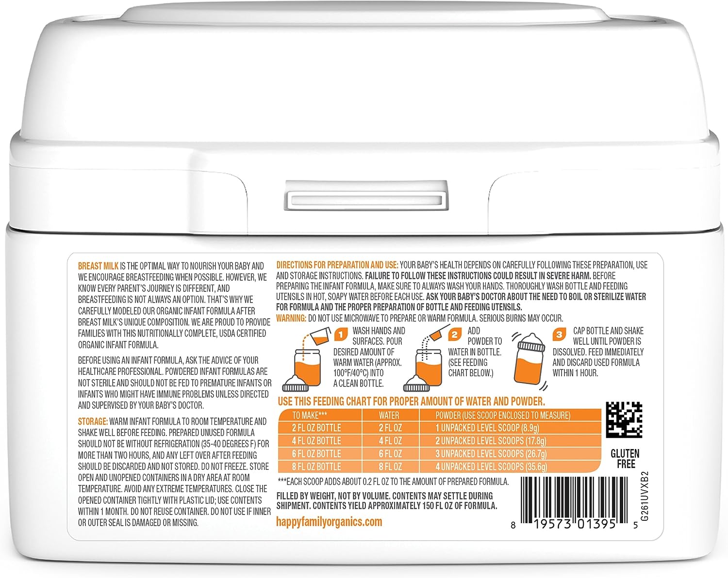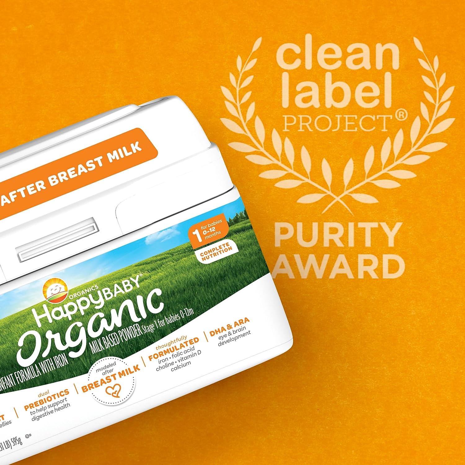 Happy Baby Organics Infant Formula, Milk Based Powder with Iron Stage 1, 21 Ounce (Pack of 1) packaging may vary