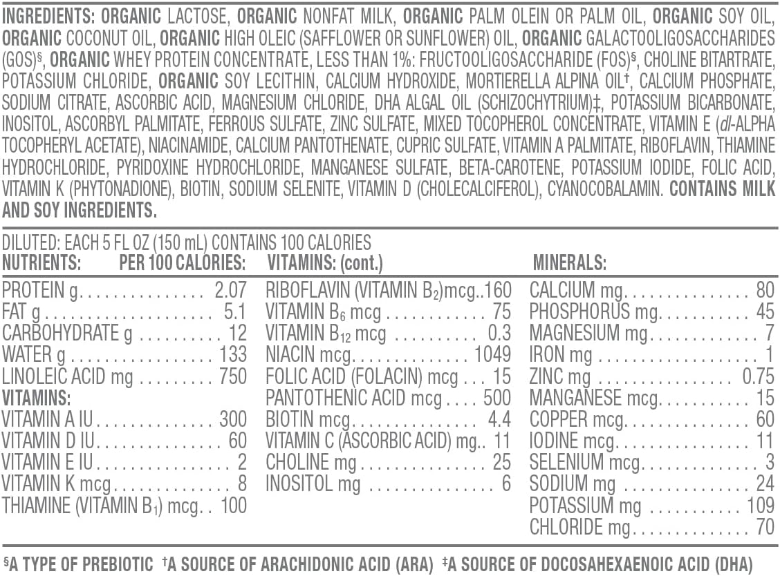 • With 4X More Prebiotics than most other organic infant formula, our formula delivers 2 prebiotics, GOS & FOS, Fibers that mimic the function of prebiotics found naturally in breast milk, which promote healthy gut bacteria in infants. No corn syrup solids. No carrageenan