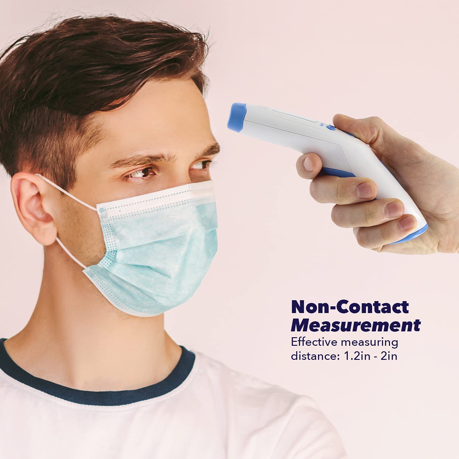 • MULTI MODE - With our non-contact (touchless) Digital Thermometer one can easily take Body Temperature, Surface Temperature, and Ambient Room Temperature WITHOUT ever touching the object or person (adult, kid or a baby). Equipped with a 3-Color changing LCD screen, easily identify if an object or person is normal, medium or too hot. Our premium forehead thermometer has a built in high temperature alarm that beeps also turning the backlight red once a fever is detected.