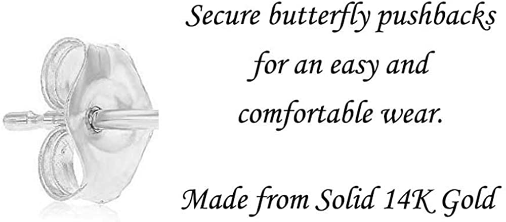 14k White Gold Solitaire Round Cubic Zirconia Stud Earrings with Gold butterfly Pushbacks