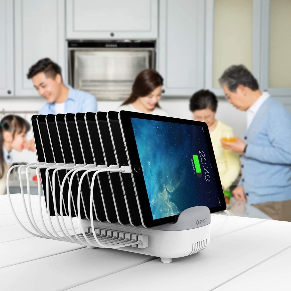 ORICO 120W Charging Station for Multiple Devices - 10 USB Smart Ports - Auto Temperature Control System - Charger Organizer Docking Station for Cell Phones, Tablets and Others (Cables not Included)