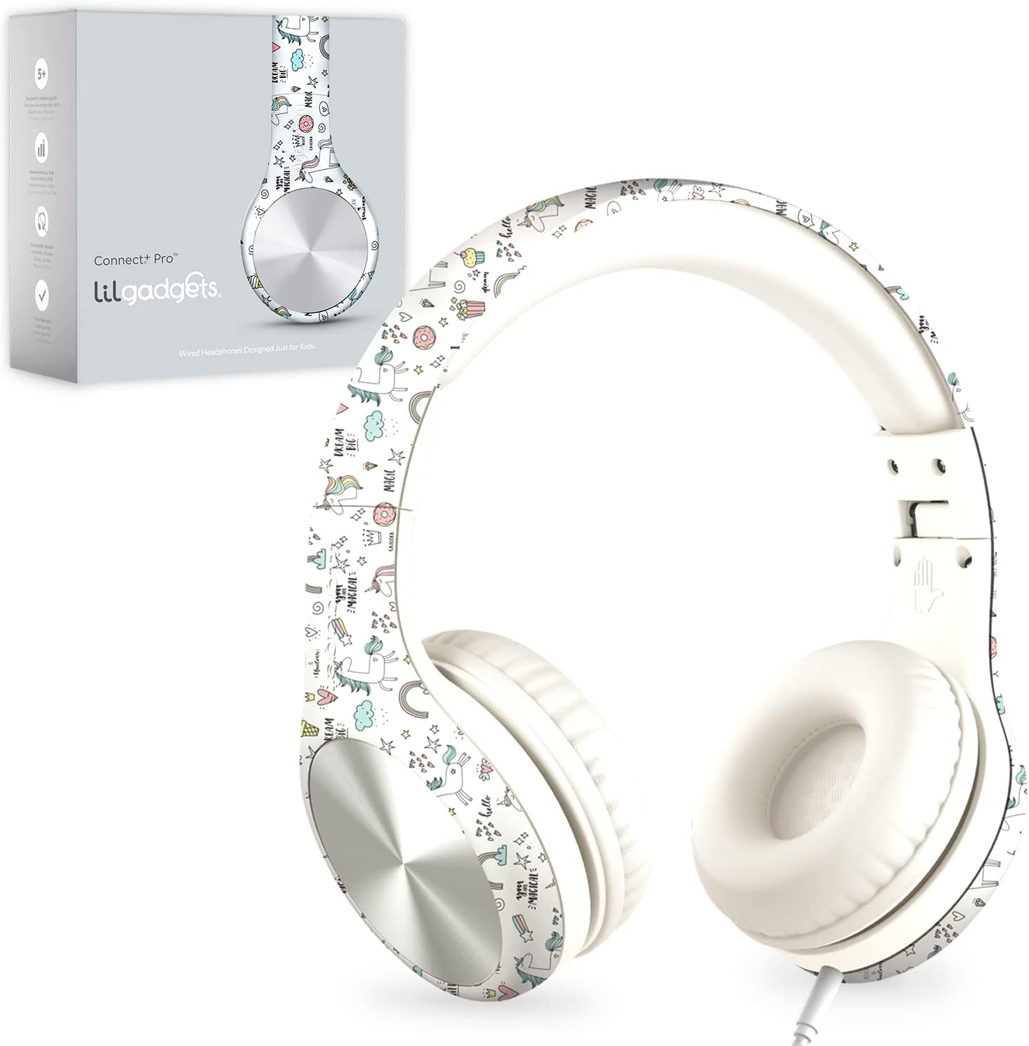 LilGadgets Connect+ Pro Wired Kids Headphones - Designed with Kids' Comfort in Mind, Child-Friendly Foldable Over-Ear Headset with in-line Microphone, Perfect for Toddlers in School, Purple