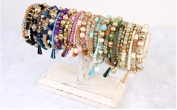 • ✦PRODUCT DETAILS✦ Stylish and chic set of bracelets adorned beautifully with multiple beads and stones, creating a unique look! MATERIAL: Base Metal, Acrylic Beads, Natural Stone. MEASUREMENTS: Approximately 2.125" Diameter. ♥CARE INSTRUCTIONS: Limit exposure to water, perfume or body cream to extend the life of your jewelry♥