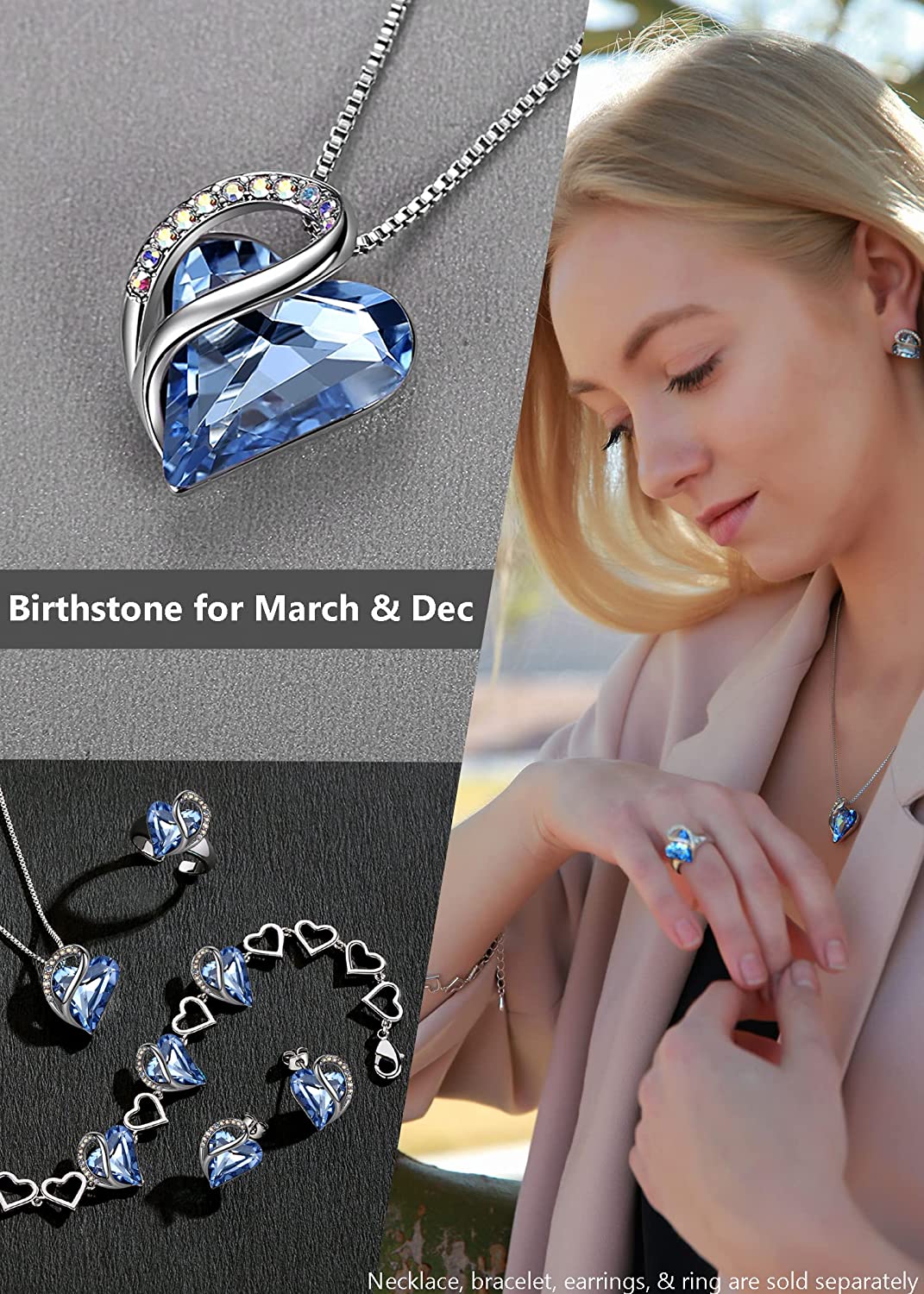 • Delicate Fashion Jewelry Gift that Fits - This woman’s necklace is adorned with a 0.75 x 0.88-inch light sapphire blue birthstone crystal for March and December. They are rhodium plated and designed with an 18-inch chain plus 2-inch extender, and a lobster claw clasp.