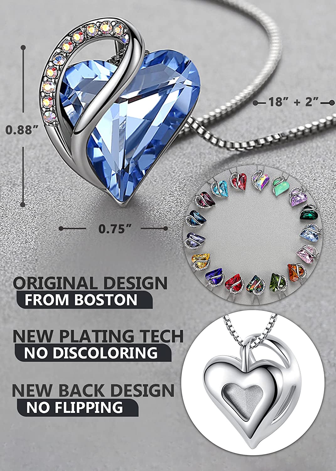 • Mother's Day Necklaces - Our Infinity Love heart necklace for women is an original design from our studio in Boston and features a precious Austrian birthstone crystal. This classic yet innovative deisgn takes you across dimensions of time and space, the prosperity of life, and ultimately the triumph of a mother's love. It's a perfect gift for every mom!
