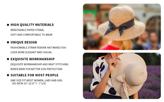 • Foldable and packable:The straw sun hat can be folded up and put into suitcase or handbag for beach holidays, cruise, travel, safari or other summer outing.