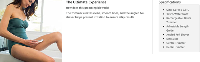 • Bikini Trimmer Perfect for quick, precise touch-ups and for shaping your bikini line