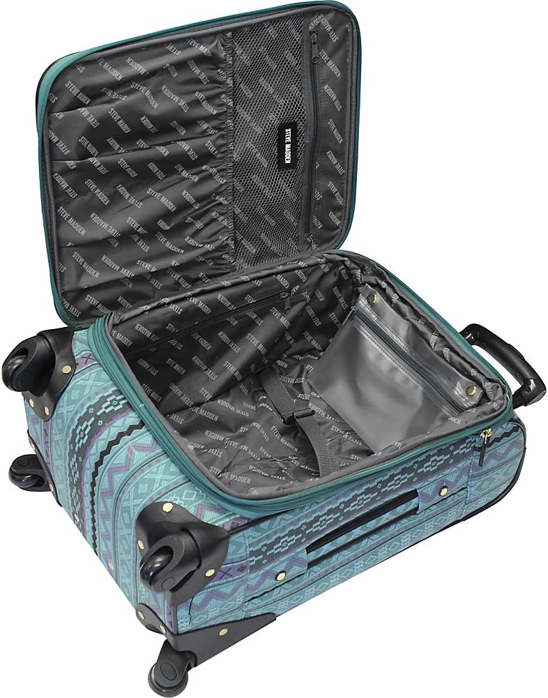 Steve Madden Designer 20 Inch Luggage Collection - Lightweight Softside Expandable Suitcase for Men & Women - Durable Carry On Bag with 4-Rolling Spinner Wheels (Legends Turquoise)