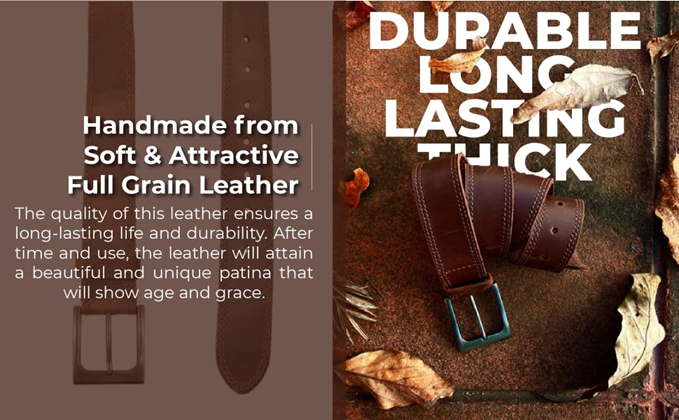 • CLASSIC NICKEL BUCKLE: The belt is adorned with a classy nickel buckle that shouts style and charm. Combined with the elegantly hand cut and hand sewn Full Grain Leather, it will serve as a fine accessory to any jeans or pants, suitable for any occasion.