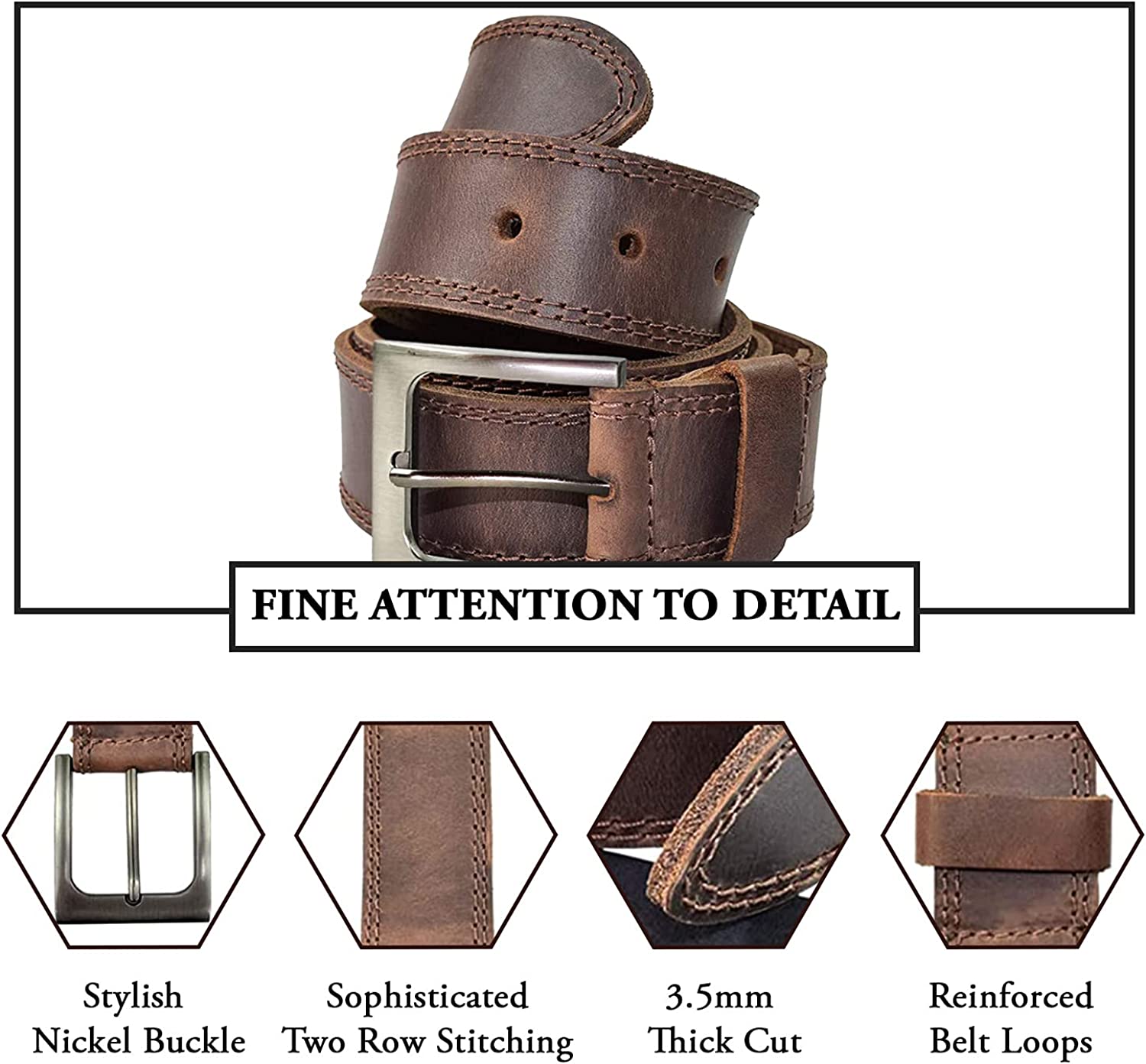 • DOUBLE ROW STITCHING: The belt is handmade by expert local artisans of Pastores, Guatemala. The belt is hand cut and finished with a double row stitching method than not only looks good, but also makes for a durable belt that will give you a lifetime of use.