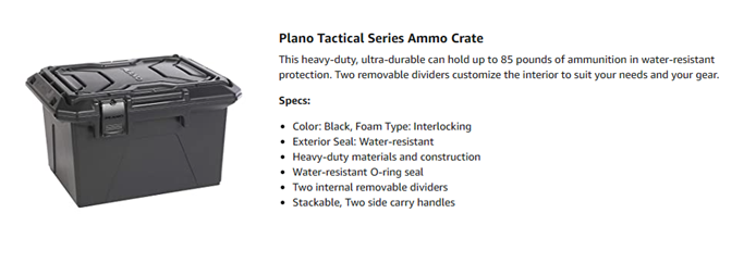 • WATER-RESISTANT PROTECTION: Unlike cardboard ammunition boxes ammo is typically sold in, the Plano Ammo Crate has a water-resistant O-ring seal to prevent exposure to moisture and keep your gun ammo dry.