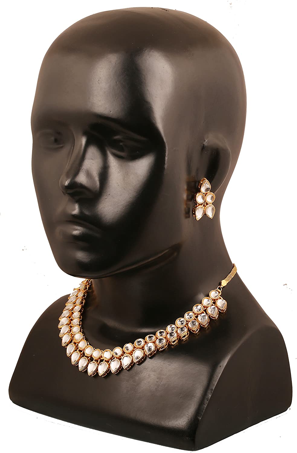 • Touchstone "Contemporary Kundan Collection" Indian Bollywood traditional Mughal Kundan polki look neutral bridal designer jewelry necklace set for women in gold tone SPECIFICATIONS : Necklace 9 inches with extendable flat chain/links up to 18 inches. Earring weight (single) 6 gms. Earrings length 1 inch. Earring width 0.70 inch.