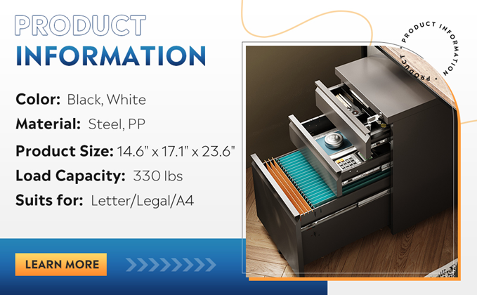 • 【STYLISH & PRACTICAL】Featuring simple stylish appearance, this 3 drawer metal file cabinet with lock fits under most desks, keep your workspace tidy and clean