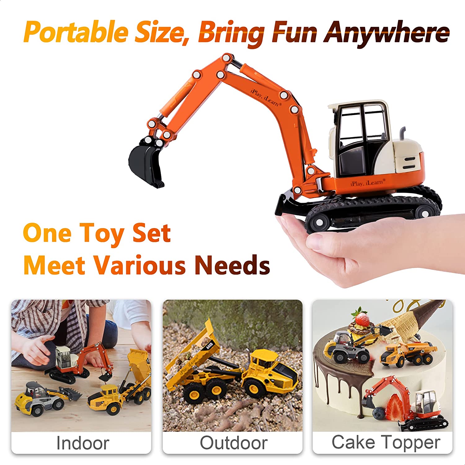 iPlay, iLearn Heavy Duty Construction Site Play Set, Metal Dump Truck, Excavator Digger, Tractor Bulldozer Diecast Vehicle, Outdoor Sandbox Car Toys, Birthday Gift 3 4 5 Year Old Toddler Boy Kid Child
