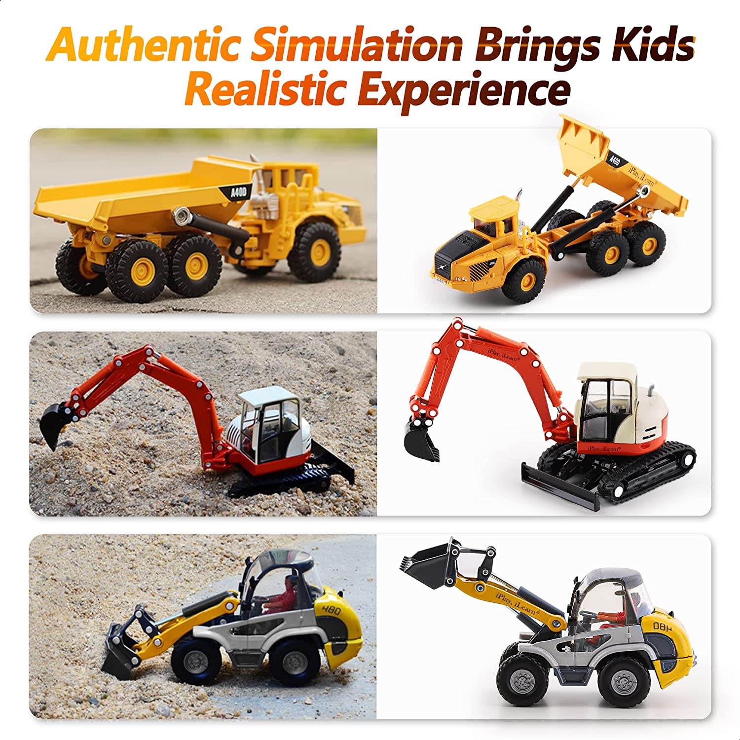 Realistic vehicles help kids learn about the structures, working principles and applications of machinery in real life.