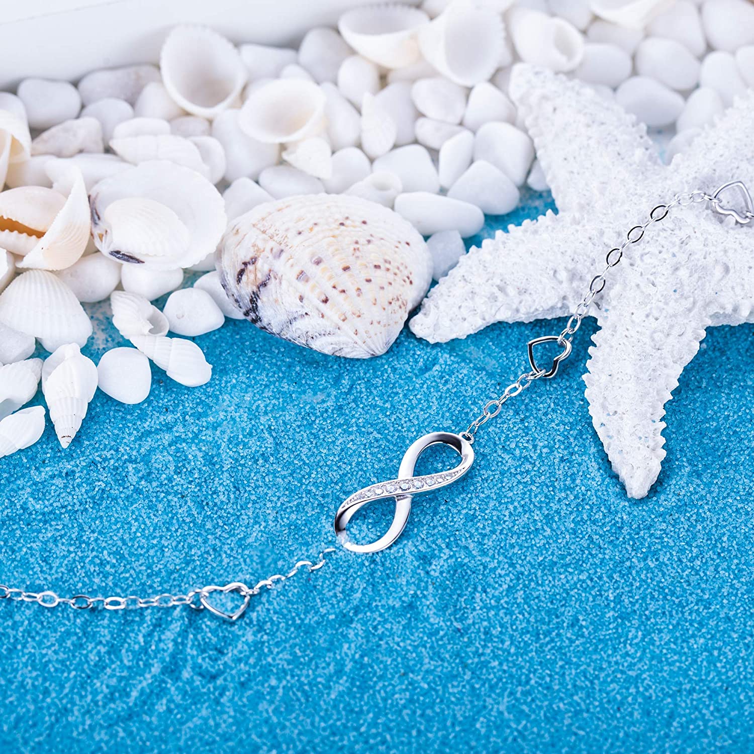 Billie Bijoux Womens 925 Sterling Silver Infinity Anklet Bracelet Endless Love Symbol Charm Adjustable Large Bracelet Mother's Day Gift for Women