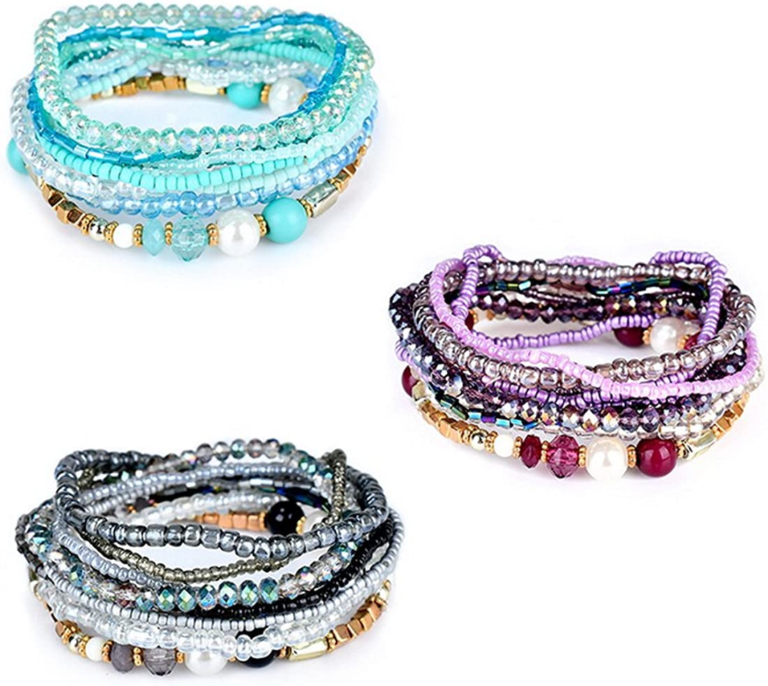 MengPa Stackable Beaded Bracelets for Women Bohemian layering Strand Statement Jewelry