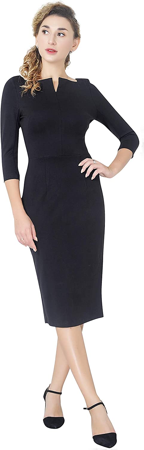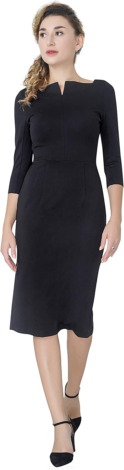Made by Marycrafts, this dress, undoubtedly owns elegant and modest features to help you inner lights shine in every occasion FEATURES: - SQUARE SLIT NECK - 3/4 SLEEVES - PENCIL SILHOUETTE - COPPER BACK ZIPPER - MIDI LENGTH (43-45")