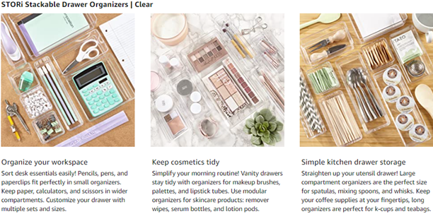 - Stackable design great for cosmetics, jewelry, kitchens utensils, and office supplies