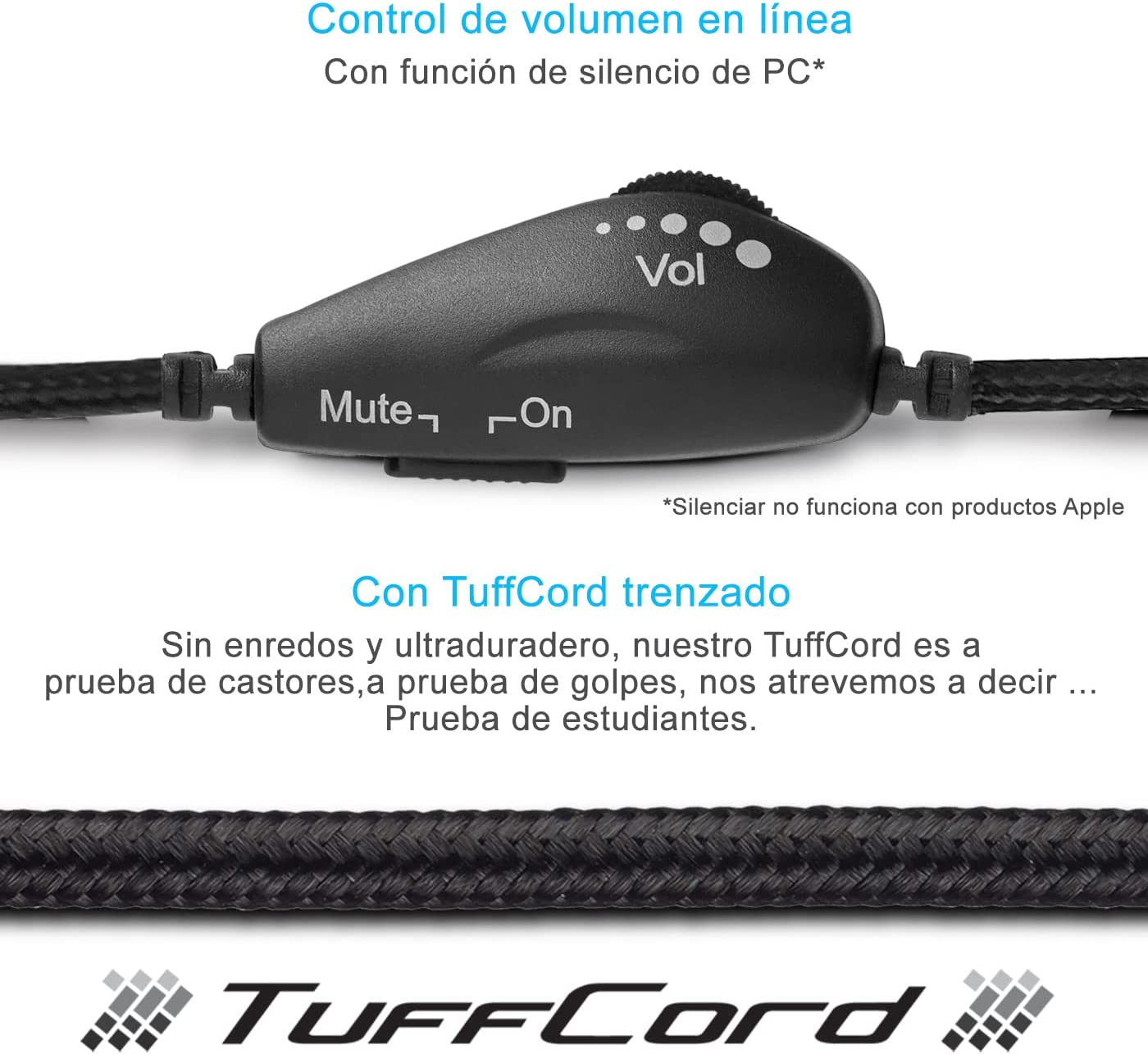 • Durable Design: Adjustable headband with easy to clean leatherette earpads. Headset and tangle free braided TuffCord cable designed for hard wearing and to be long lasting.