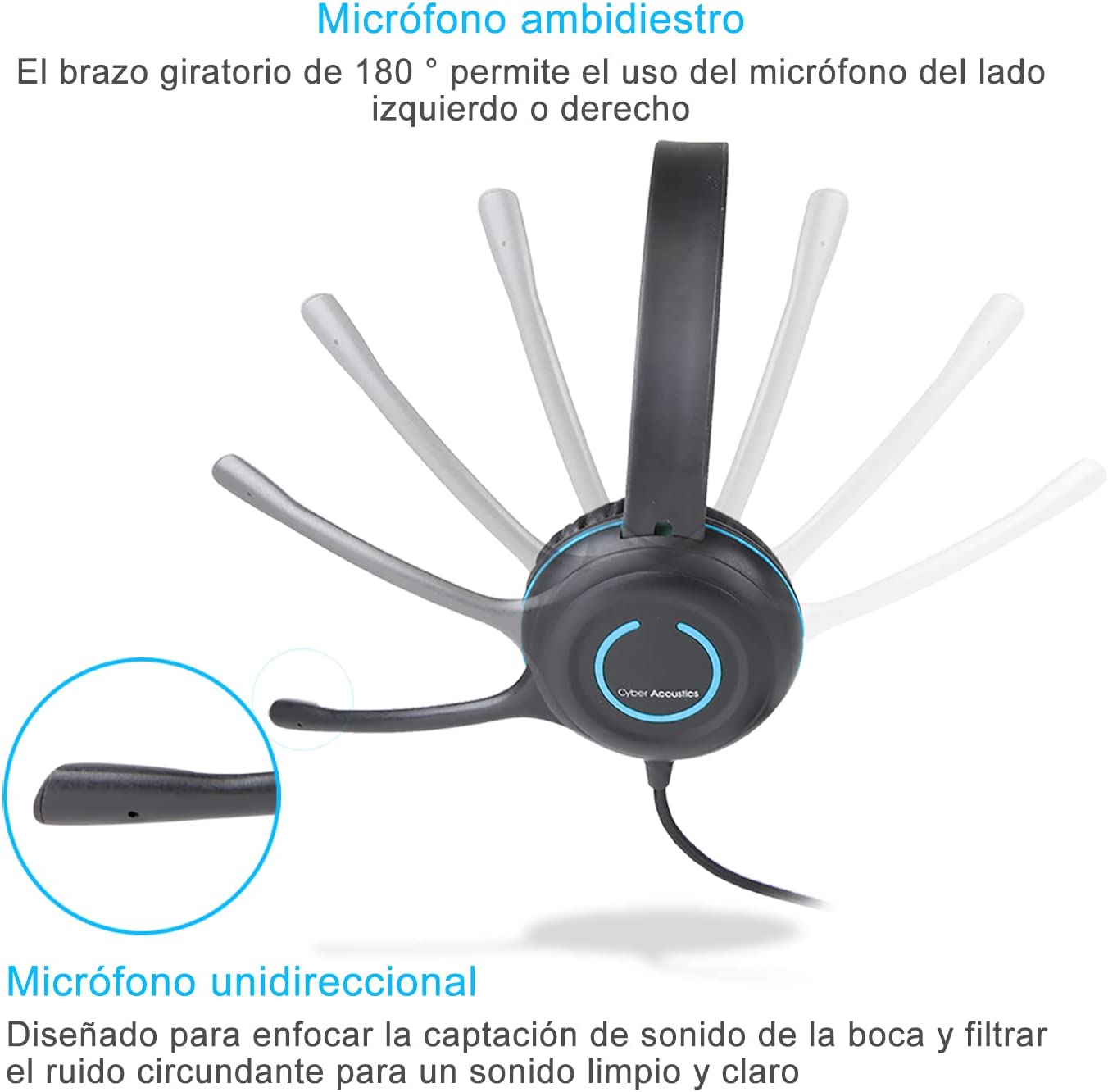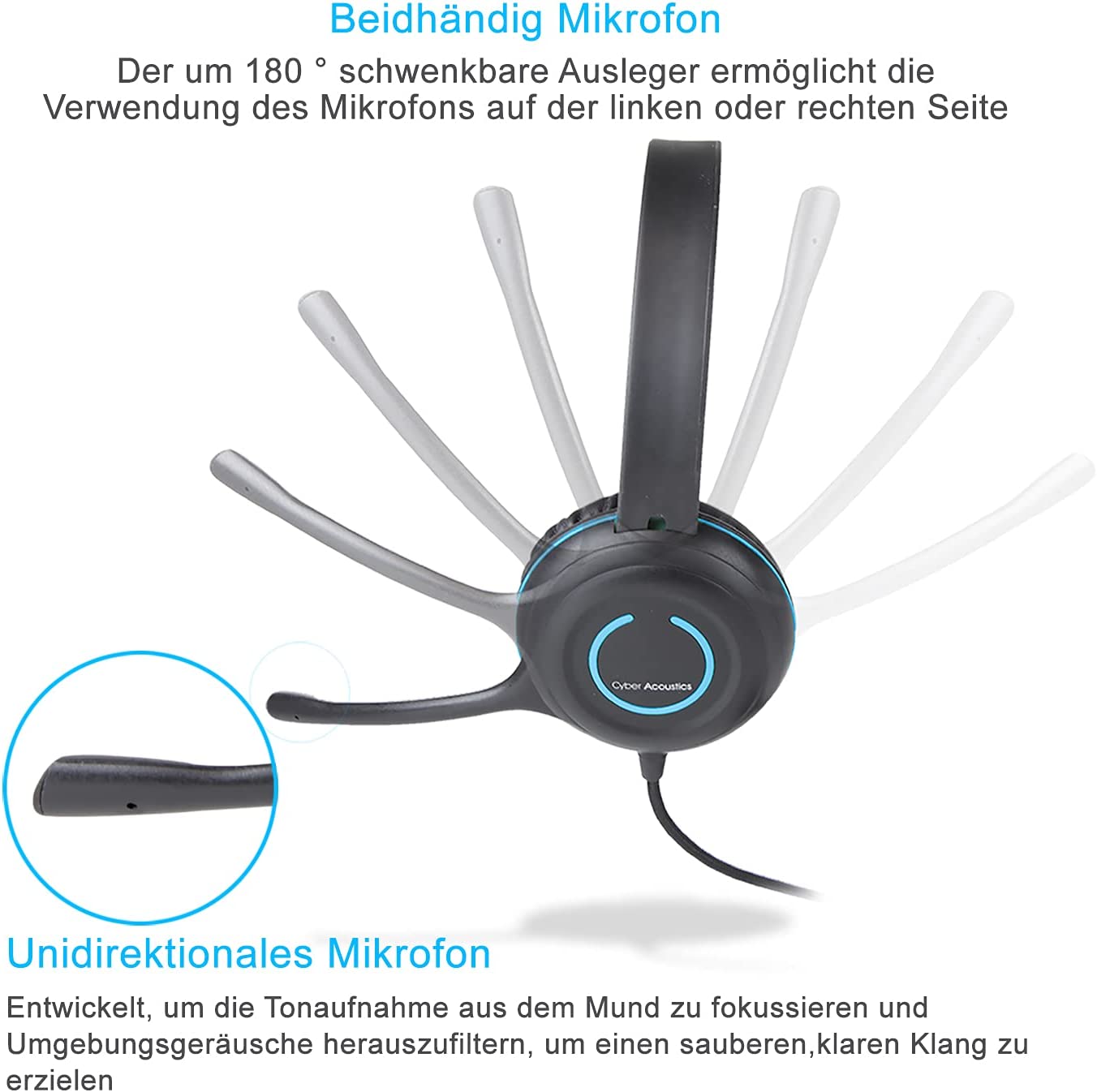 Cyber Acoustics Stereo USB Headset (AC-5008A), in-line Controls for Volume & Mic Mute, Adjustable Mic Boom for PC & Mac, Perfect for Classroom or Home