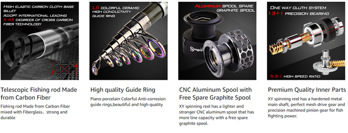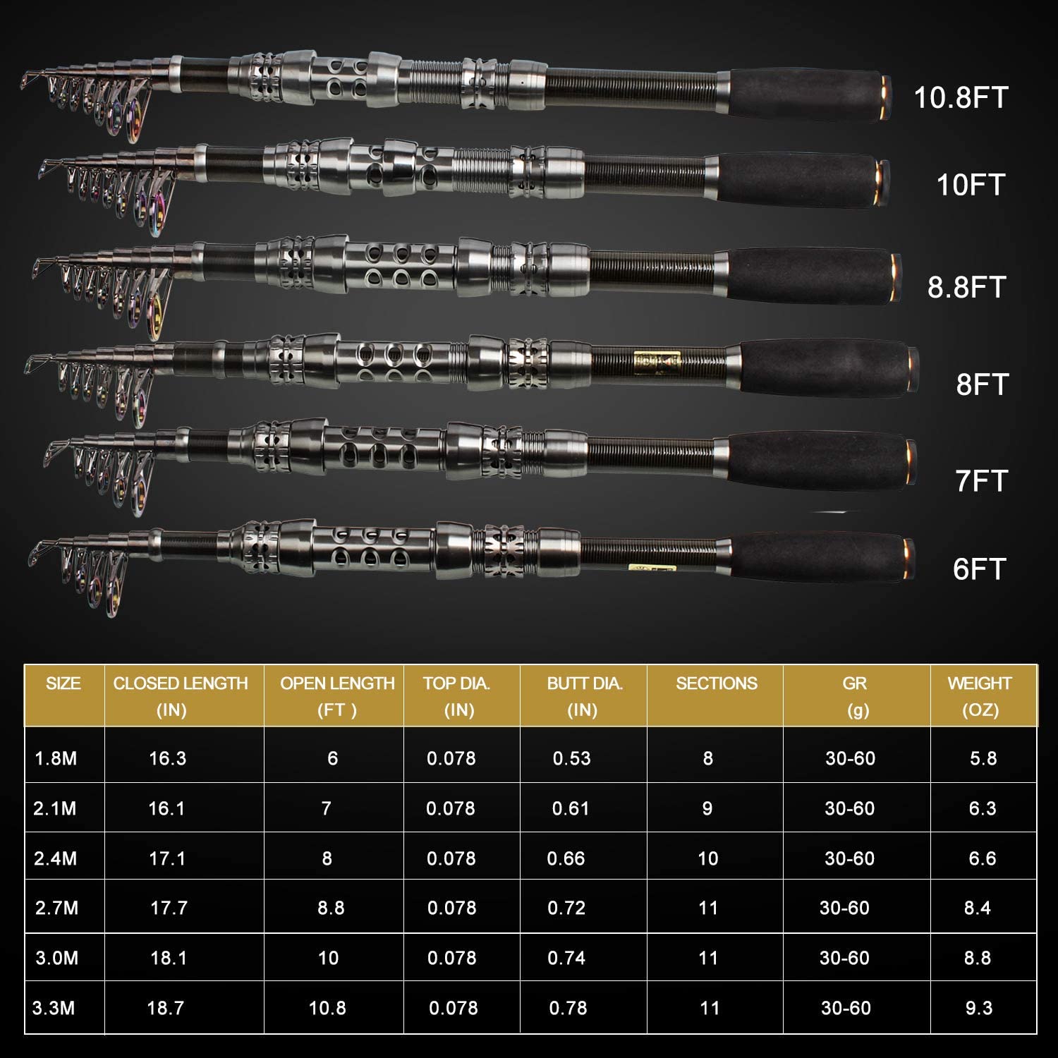 • THE ROD:High Density Carbon Fiber Mixed with Fiberglass Make The Fishing Pole Hard & Durable,The Hard and Light Weight Guide Ring Made by SIC Ceramic and The Heat Dissipation is Better. Its Lower Friction Coefficient Making It Durable, And Its International Advanced Epoxy Resin Adhesive Make The Guide Ring More Solid.
