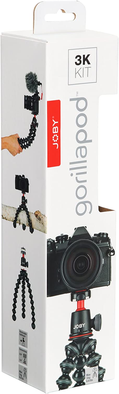 Joby JB01507 GorillaPod 3K Kit. Compact Tripod 3K Stand and Ballhead 3K for Compact Mirrorless Cameras or Devices up to 3K (6.6lbs). Black/Charcoal.