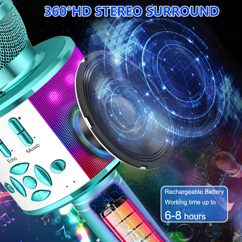 Kids Jazz Drum Set for Toddlers 1-3 (15-Piece), Drum Kit Musical Instrument for Beginner Music Practice w/ 4 Lights, 6 Drums, 2 Cymbals, 2 Drumsticks, Stool (Blue)