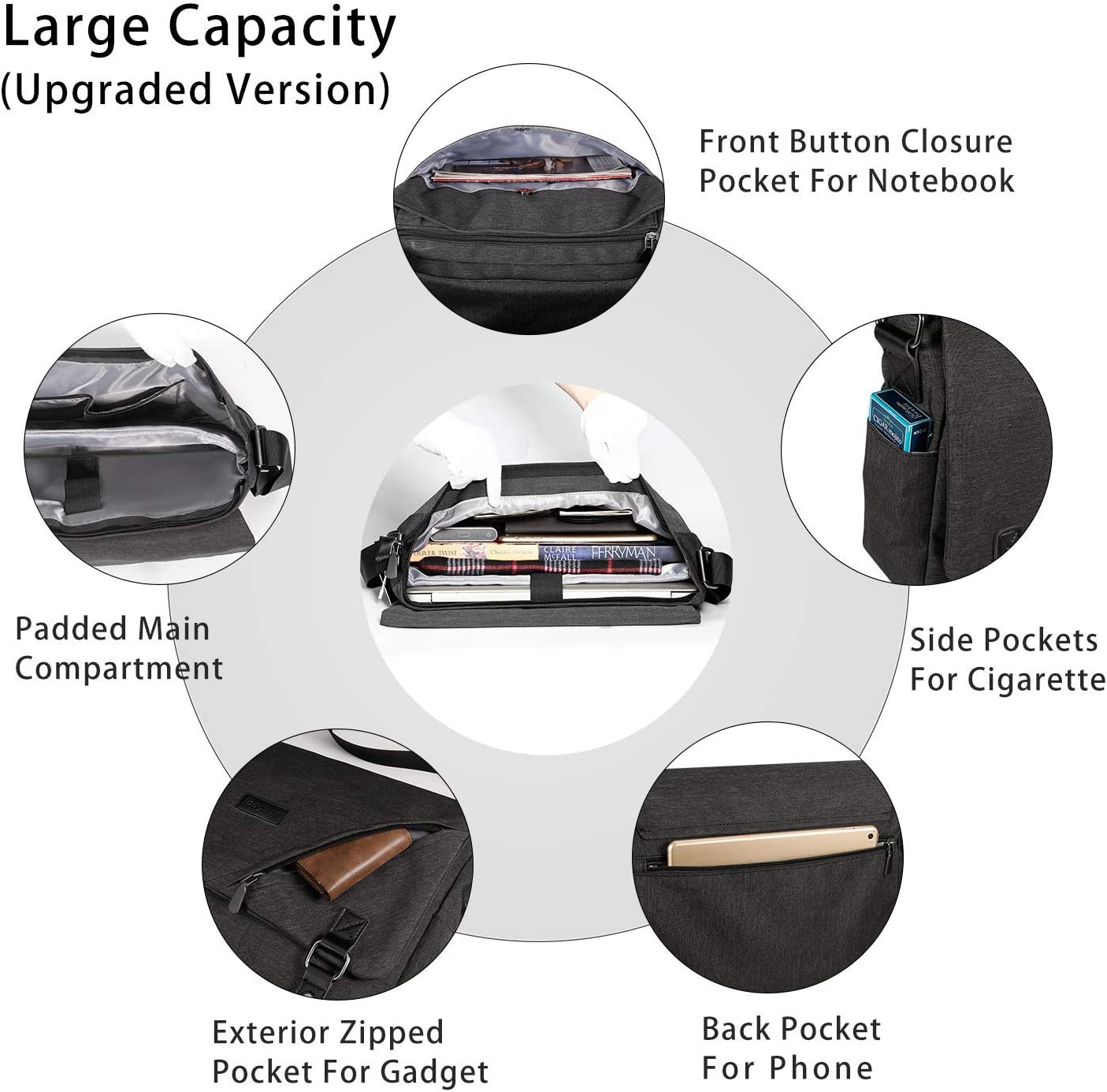 • ❤ Multiple Rooms Messenger Bag: A total of 9 pockets. Roomy enough for all of your stuffs.1 main zipper Pocket, 1 front zipper pocket, 1 front button pocket, 2 sides pockets, 2 open inner Pockets, 1 inner zipper pocket and 1 back zipper pocket.