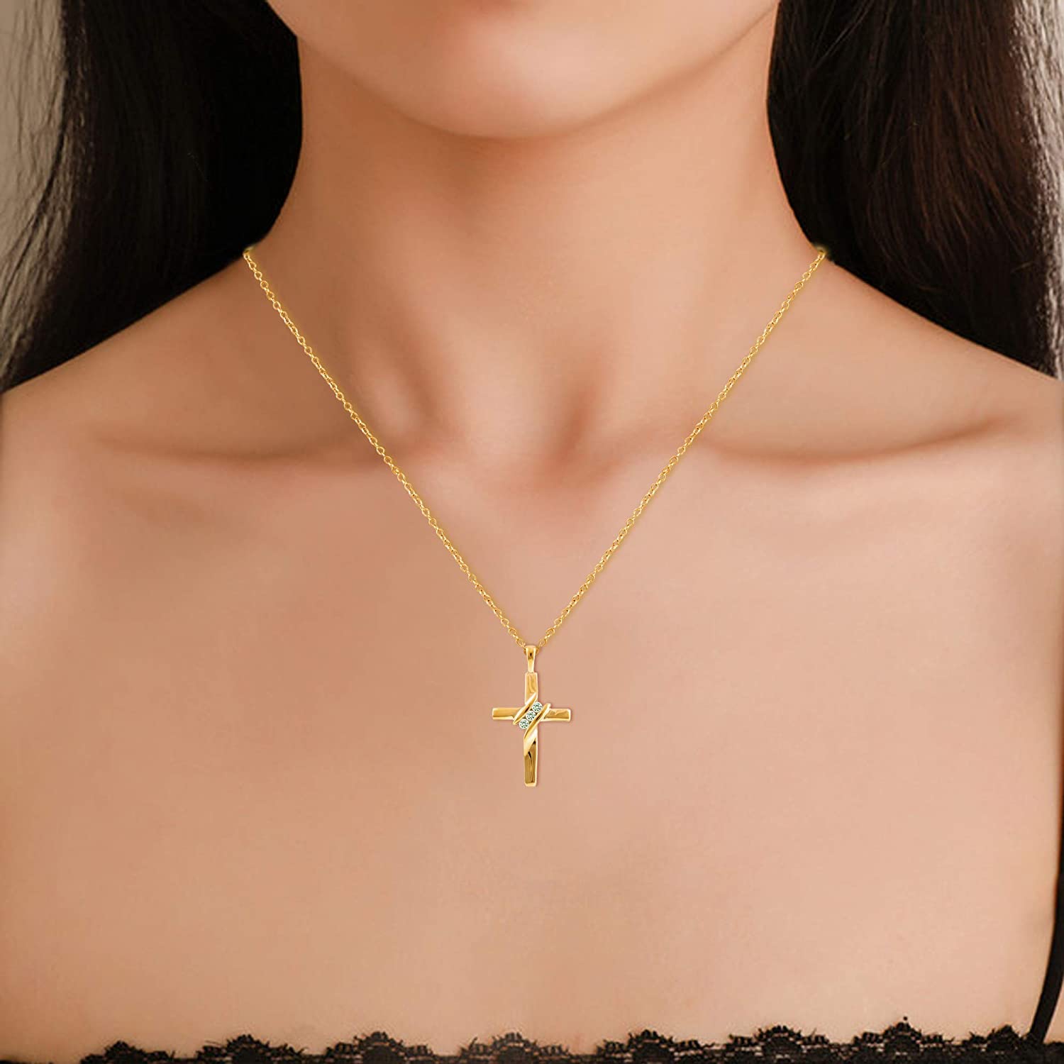10k Diamond Three-Stone Cross Pendant Necklace Religious Jewelry (0.05cttw, I-J/I2-I3) 18"