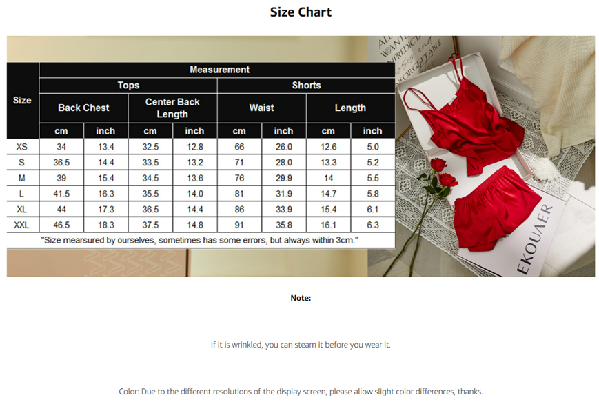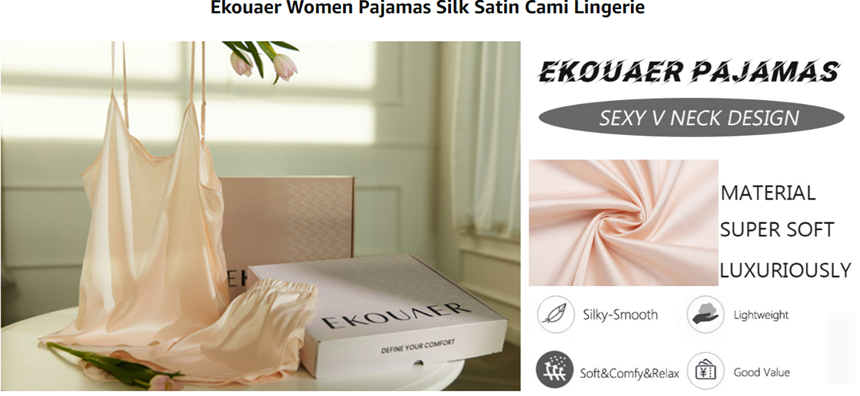 • Ekoauer silk cami pajamas set are luxuriously stylish & soft to the touch! If it is wrinkled, you can steam it before you wear it. Due to the different resolutions of the display screen, please allow slight color differences, thanks.