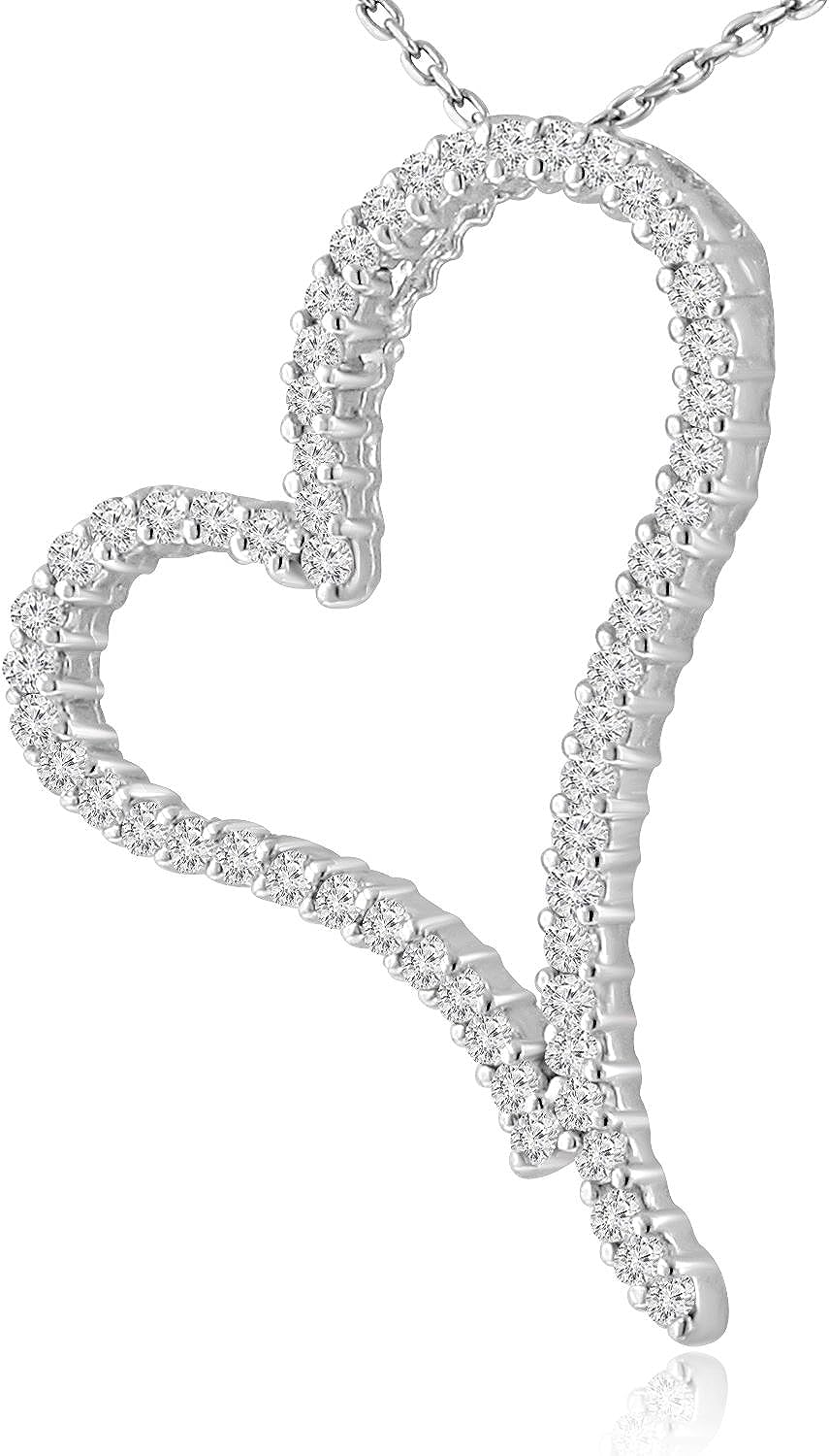 Madina Jewelry 1.30 ct Round Cut Diamond Heart Shape Pendant Necklace (G Color SI-1 Clarity) in 14 kt White Gold