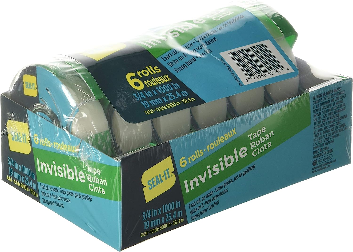 Seal-It invisible stationery tape with matte finish is perfect for the office and home use. The patented press N' Cut dispenser offers 1000 inches of invisible tape with our exact cut technology. This technology allows you to cut off the exact amount of tape needed avoiding wastage. The tape unwinds smoothly while using for everyday packing, wrapping or mailing. Frosted finish on the roll, but invisible on paper. Perfect for indoor and outdoor use, also ideal for everyday packaging or arts and crafts. You can write on it with pen, pencil or marker. The tape cuts well on any metal blade dispenser.